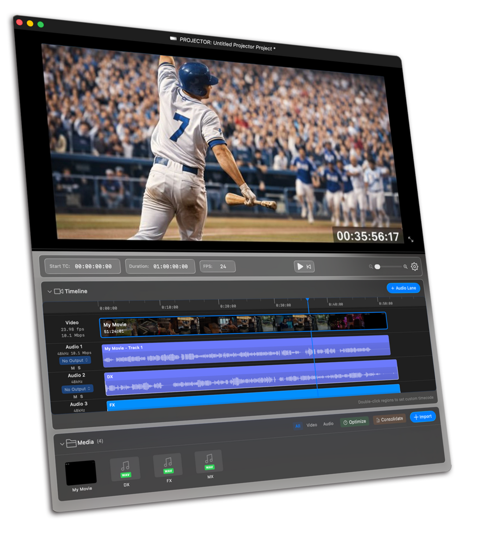 Mac-only video playback with easy sync, built-in optimization and multi-reel support.